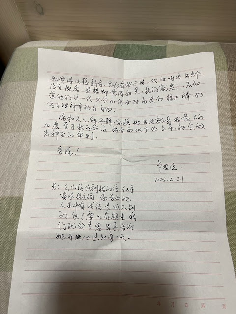 他还写道:朋友们的明信片收到一些,同监室的难友都觉得比较新奇,因为有些千禧一代对明信片没有概念……不知道他们这一代又会如何面对历史的接力棒,如何去理解幸福与自由……