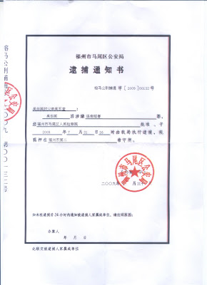 今天中午,范燕琼女士和吴华英女士的家人均收到福州市马尾区公安分局的逮捕通知书,奇怪的是由福州市马尾区检察院批准逮捕的通知书,已经将原来刑事拘留的“涉嫌诽谤”改为“涉嫌诬告陷害”。由此可见,为了迫害维权人士福州当局已经开始不择手段了。