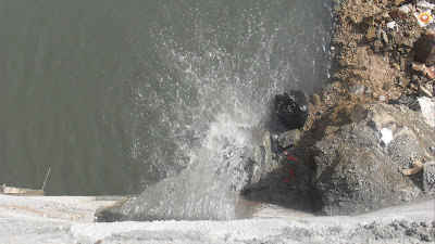 (原本是清澈见底的江溪,现在是混浊的污水,老百姓就生活在这样的环境中)