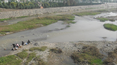 (老百姓只能够在严重污染的水中洗衣服和洗菜)