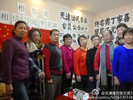 今天是农历马年的正月初七,明天就长假结束恢复常态。天津85岁老太贾桂珍和女儿张兰英从年三十就给习近平总书记拜年,希望一反前任以腐治国的习近平能够万岁,并在天津南开区时代宾馆103室挂上中共党旗与党国的国旗,举行多场配合反腐的伸冤活动。
