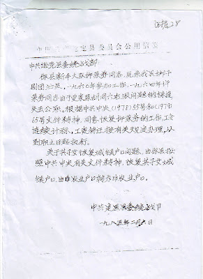 黑龙江逊克县山湖社区47组135号访民许荣芬,原籍河北定县佰堡村。1960年,当时11岁的许荣芬成为定县梆子剧团演员,享受公职人员待遇。64年因受其“右派”姨父胡同六的牵连被停止工作下放,85年河北定县给予许荣芬落实平反政策,并给其户籍所在地黑龙江逊克县统战部出具恢复公职的书面函件。