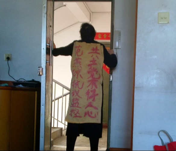 刚一出门就有四五个警察拦截,范燕琼和王秀英在一起,被五六个警察、政府工作人员贴身跟踪,并抢夺走伸冤的横幅和“战袍”,吴霖香至少被四五个警察强制带走,手机也失去联系,原本计划到五一广场的刘玉钗等冤民们也被拦截了。