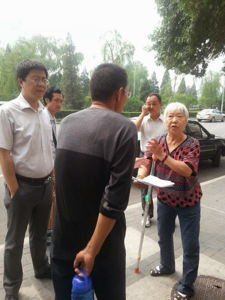 昨天下午2点,吉林访民郭洪伟的母亲肖蕴苓在湖北武汉柳小华、河北石家庄牛领钗、江西新余应立刚、宁夏中卫赵洪祥、吉林长春李志伟、吉林敦化肖全食、吉林延边孙玉环、吉林伊通邹金等20余名全国各地维权访民陪同下到中纪委监察部,就其儿子郭洪伟5月28日在监察部遭恐怖袭击受伤一事讨说法。