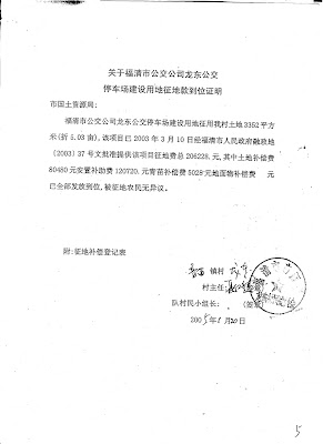 据悉,福清市龙山街道一百多位村民曾联名举报村支书夏仁德从03年开始侵占倒卖了龙东村集体土地20余亩,还有50余亩土地被抛荒等待倒卖,大部分的土地被用作房地产开发。其中5.03亩土地(实际为7亩多)被征收为国有后,划拨给福清市公交公司建停车场。但,失地农民并没有得到法律规定的补偿款,而村支书夏仁德却向有关部门谎称补偿款已经全部发放到失地农民手中。