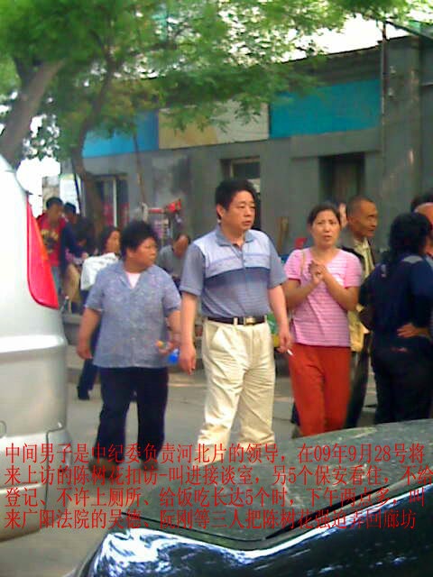 等待的过程中,见来访者都陆续地一批批地登记后被送往久敬庄,只把我留下,我就开始恐慌了,极力要求跟其他访者一起去久敬庄,被拒绝;我感到了势头不对,想赶紧逃跑,已经来不及了,保安挡住门口,不许我出去,我惊恐万分,赶紧给我的同事和丈夫打电话,告诉他们,我在中纪委上访,可能又会被抓。