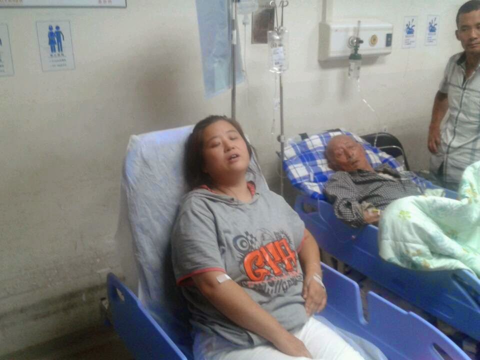 因孙晓丽被强拆时,遭三间房乡政府雇佣黑社会打手殴打所致身患脑血管夹层瘤,以及心脏病、糖尿病、乳腺增生、子宫肌瘤等疾病,加上这么长时间的庭审未吃饭休息,致使孙晓丽头昏恶心,呕吐晕倒,经120抢救脱险,但已无法继续代理。经原告及旁听人员强烈要求,法官赵世奎无奈次日下午2点继续开庭。