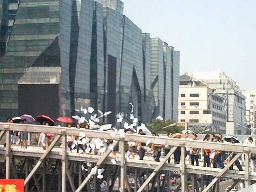 2014/8/16)权利运动发布:今天上午,已83岁的周静娟老人陪同儿媳妇许海凤、外孙女何凤珠,以及刚满八个月的第四重代外孙女,撒传单万份,向党中央汇报无锡市滨湖区区委书记袁飞偷拆百姓房屋的丰功伟绩。