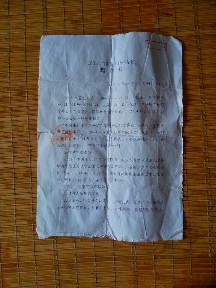 辽宁省辽阳市看守所负责人滥用职权、羁押维权良民,也控告其怂恿犯人无数次殴打、辱骂、凌辱我,致使本来伤重的我更加病弱:伤势更重,伤痕累累,生命垂危,并控告其无视我原本惨重的伤情,逼迫我每日走道六个小时在监狱,致我添加心跳加速(90—120次每分钟),静脉曲张的病症。