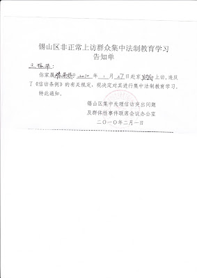 践踏法律和人权的“法制学习班”造成了官民矛盾的进一步恶化,为此,北京当局于09年4月1日通电各地方,要求立即取缔残酷迫害维权人士的“法制学习班”。但,由于无锡当局官员对不法财富所体现出的极度贪婪,和掠夺公民财产所体现出的疯狂残暴,以及化解社会矛盾所体现出的弱智低能,注定这些“三盲”官员已经离不开臭名昭著的“法制学习班”为他们巧取豪夺服务了。