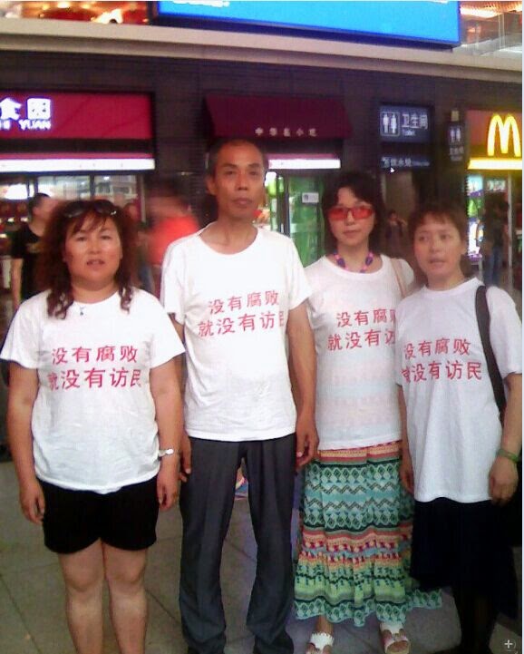 李建筑、张建华、朱玉芳三位访民为支持习近平反腐败,多次在北京建外使馆区的亮马河穿文化衫,也是在京访民反腐文化衫的发起人。