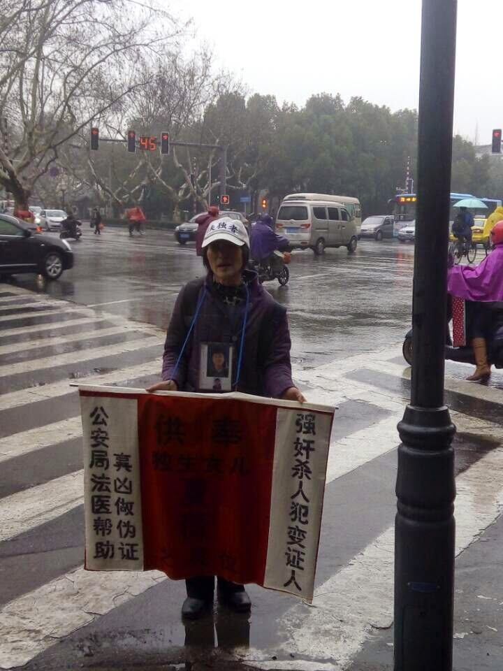 今天是2015年春节倒数第四天,来自江苏省启东市的失独者、夏薇妈妈余南哲在江苏省高院、省检察院门口乞讨。余南哲说:女儿夏薇被男房东夏建兴杀害已经整整5年了,启东公安局包庇杀人真凶,使其至今逍遥法外。