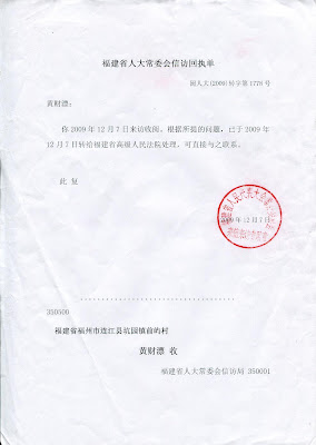(福建省人大给予地方法院的信访函)