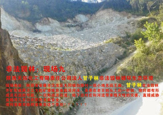 八、天拓公司在大同镇鱼姐村和白路村两个村疯狂的毁林开矿,对两个村的生态环境造成了毁灭性的、无法恢复的破坏。开矿重型卡车将蚕种场至白路村沿途五个村,十五公里的村级公路,基本压报废。暴雨形成的矿渣泥石流将鱼姐河三公里的河床淤满,将新民水库的库区淤积十分之一,天拓公司甘子林毁林开矿直接断送了鱼姐村和白路村百余名,河床淤积的矿渣直接威胁到下游村庄农民的生命安全和新民水库的安全。村民多次找到大同镇人民政府任岩书记,反映两个村被毁灭的情况,任岩书记回答的是我们没法管,请问镇政府是农民的一级政府,一级政府都管不了,让谁来管?