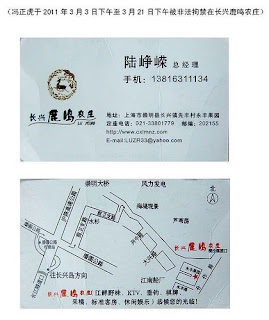 (冯正虎于2011年3月3日下午至3月21日下午被非法拘禁在长兴鹿鸣农庄)