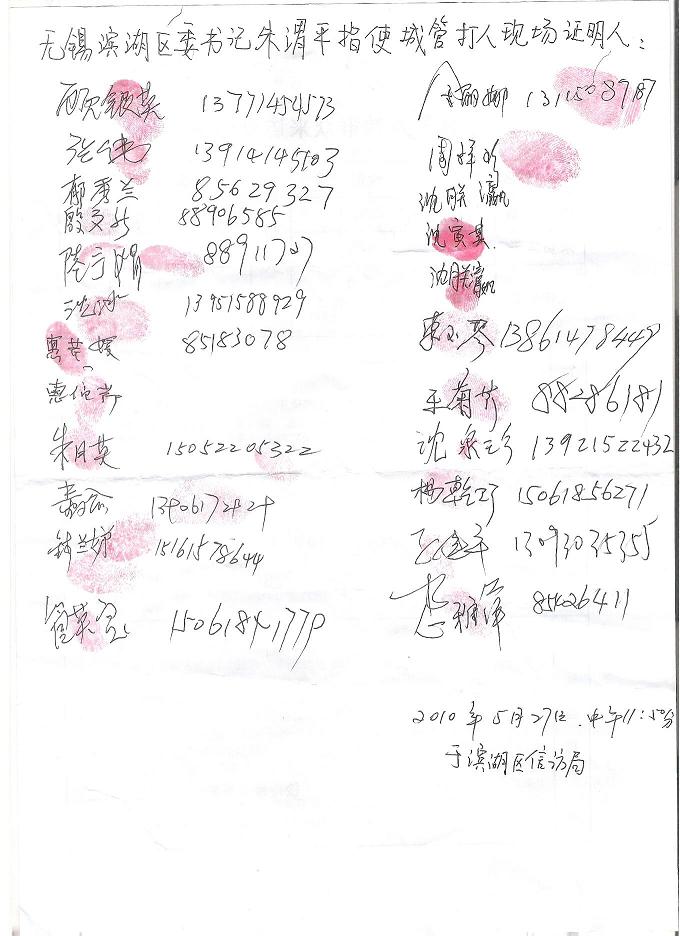 (现场老百姓签字证明区委书记指使城管打人)