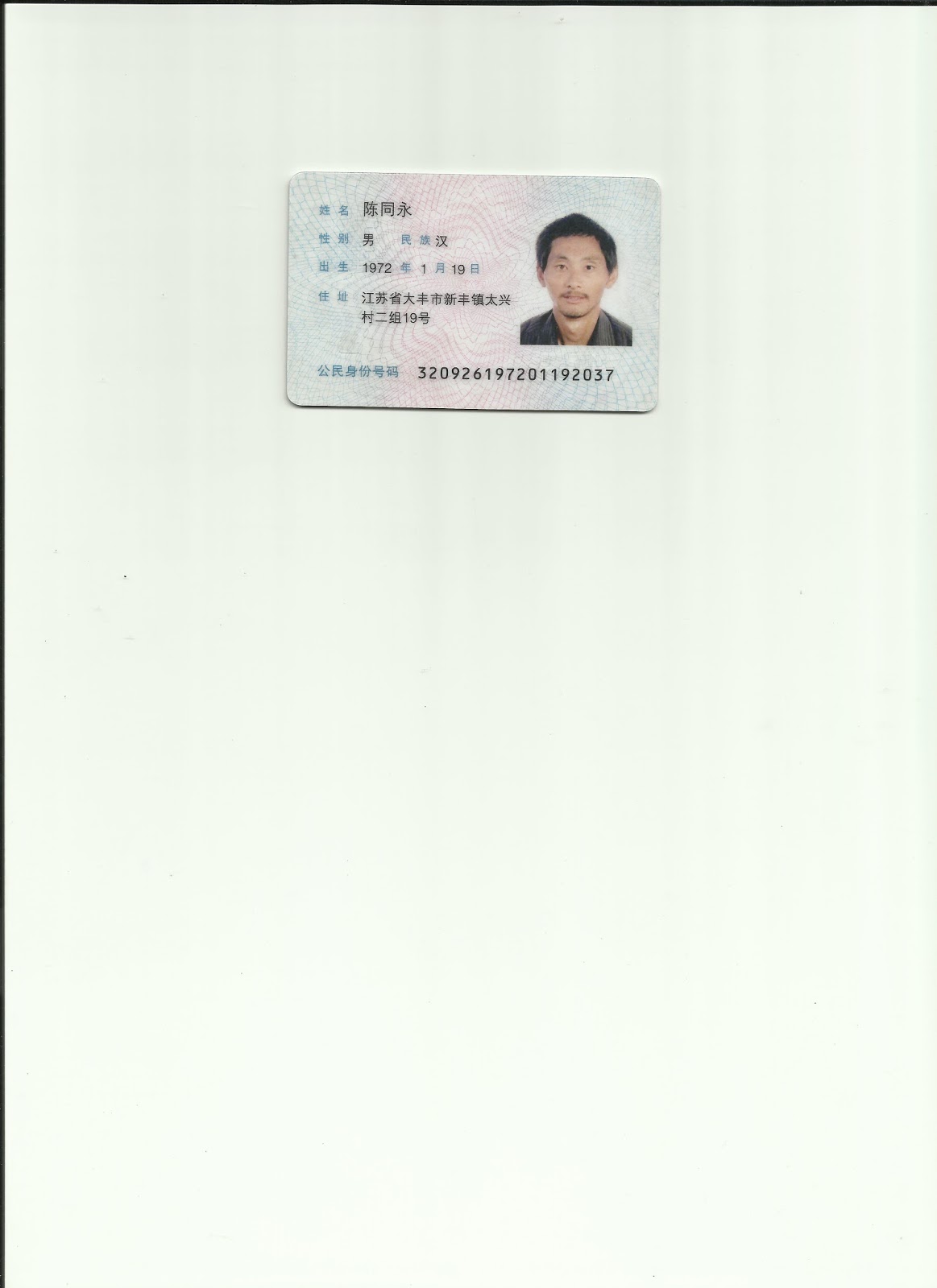 具受害投诉人陈同永,男,汉族,居民身份证号码:320926197201192037,住江苏省盐城市大丰区新丰镇太兴村二组。