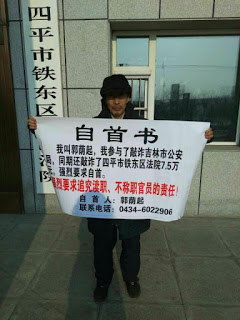 官方敲诈勒索的证据,并非只有郭洪伟母子二人,几笔敲诈款的签名还有郭洪伟八旬老父郭荫起,老人在冰天滑地去四平公安局、检察院、法院去自首,都无人受理。这究竟为什么?为什么三人的签名只抓两个人?太多的疑问谁来解答?……