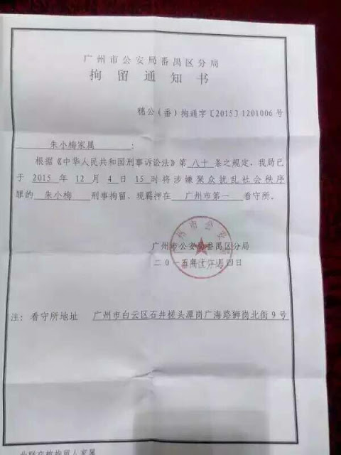 宪法日番禺打工族服务部朱小梅被刑事拘留 2015-12-05 权利运动编辑 12月4日宪法日,番禺打工族服务部职员朱小梅因涉嫌聚众扰乱社会秩序罪被刑事拘留。她本是女工,因充当工人代表而被资方开除,后来成为劳工公益机构专职工作者,是杰出的工人培训师和集体谈判专家。其孩子刚出生10个月,还在哺乳期。 分享这篇文章到: