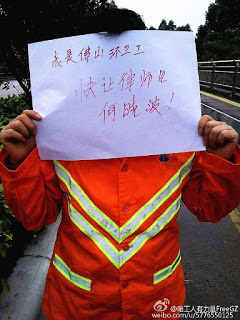 我们是佛山的一群环卫工。知道晓波被抓走了,我们很着急很气愤,因此发出这个声明,把事实说清楚,表达我们的立场。