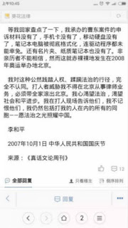 明天,我本应是到天津继续寻找我的当事人我的朋友李和平的,但是山东舒向新律师突然被捕,在看守所被酷刑,为避免舒律遭受其他侵害,我不得不留在济南,遥祝天津。