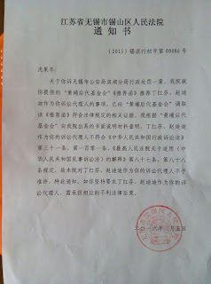 另据了解,无锡市锡山区法院也对维权公民孙静芳发出了相同的《告知函》,告知其上海黄浦后代基金会为其出具的推荐函不合法。