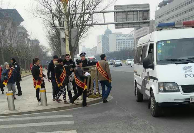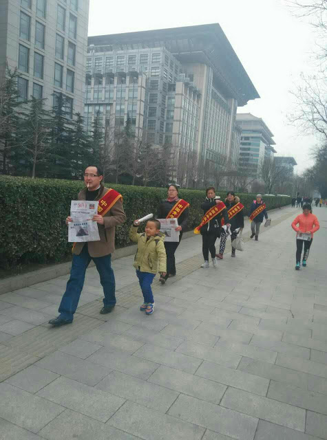 权利运动编辑员获悉2016年3月13日来自全国各地的多名接种疫苗不良反应受害儿童的家长在北京为中国青年报义务提供多份中国青年报供市民阅览,并邀请大家阅读报道疫苗受害者经历的《被恶魔选中的家庭》一文,也以此感谢中国青年报对疫苗受害家庭的关注。下午2点多,免费读报活动进行约20分钟后,家长们被警察拦下,后被北京西长安街的派出所带走,派出所电话:010-66037424。被带走的家长有来自山西的易文龙,来自安徽的金玲,来自山东的史桂芹,来自黑龙江的杨丹,及正怀孕的裴雪(后被释放)。其他疫苗受害家长打电话给派出所后,警察称,被抓的人已经送到西城区看守所,所有人手机没收一个月。目前,尚没有律师介入。