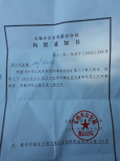 同时,这次无锡公安大抓捕事件被做笔录的人士透露,笔录更多围绕沈爱斌的事情,无锡沈爱斌因622劫黑监狱被冤判一年六个月,开除党籍和公务,为此一直在向省检察院,最高检控告,当局为了报复,再次陷害沈爱斌。另一个因素:无锡二会期间冤民上访人数众多,当局控制上访告状为目的,制造罪名,对访民取保候审限制上访。