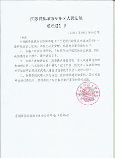 江苏吕如清诉大丰区公安局警方无证持枪乱作为及不作为一案已获盐城市亭湖区法院受理立案