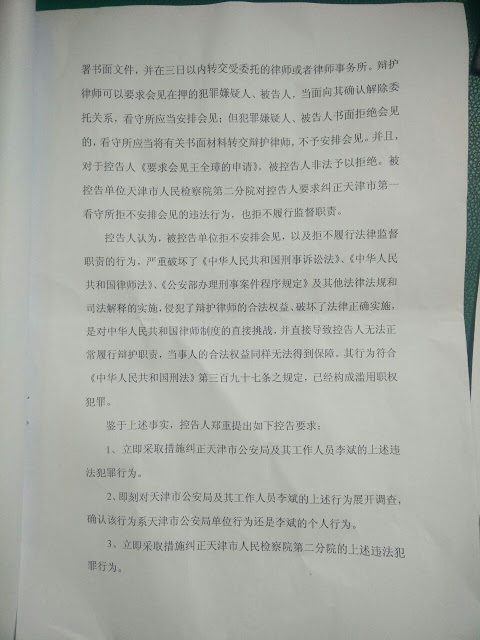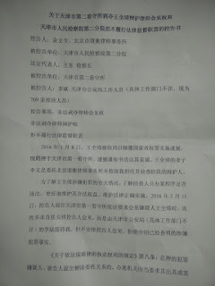 下附《关于天津市第二看守所剥夺王全璋辩护律师会见权和天津市人民检察院第二分院拒不履行法律监督职责的控告书》全文:
