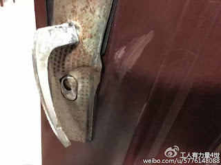 九、3月26日,早晨发现门锁被插铁片,锁打不开。此事随即告知小区保安队长易某。易队长说可能是小孩干的。我说我们一家没有仇人,怎么会出现这样的事呢?