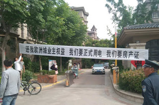 徐州睢宁县欧洲城业主至市府请愿反映房产证问题 遭警察镇压 多人被殴打带走 2016-05-19 权利运动编辑 权利运动编辑员获悉,2016年5月18日,数十名江苏省徐州市睢宁县欧洲城业主至市府请愿反映开发商三年不办房产证希望解决问题,遭警察镇压,多人被殴打带走。 据了解,江苏省徐州市睢宁县欧洲城业主已入住三年,但目前仍没有正式接入用电,房屋质量出现问题,且房产证目前仍未能办理。此前问题已多次反映都没有给解决。2016年5月18日,数十名业主至市府请愿反映希望解决问题。 据现场目击者表示,睢宁县政府出动百多警察,镇压请愿的数十名业主,其中被殴打及带走的业主中有老人。 分享这篇文章到: