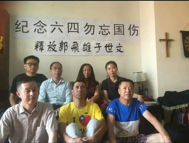 据网上媒体报道,此前一张北京公民聚会的照片在网上流传。照片上,赵常青、张宝成、徐彩虹、梁太平、李蔚、马新立、李美青等人坐在一起。桌面上点燃着多支白色蜡烛,背后的墙上贴有「纪念六四,勿忘国伤,释放郭飞雄,于世文」的标语。