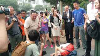 另据现场网友消息指:北京石景山国保多次要把709案王全璋律师妻子李文足强行带走,被外国人权官员围住才得以继续在现场。勾洪国妻子樊丽丽和李文足在一起,当她们打开写有要求释放王峭岭、刘二敏的纸时,有便衣粗暴地把樊丽丽推倒在地。