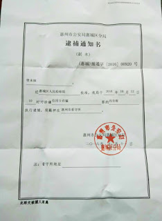 【事件记录】:10月3日下午四时许,惠州市惠城区公安分局国保大队便衣及经济侦查大队等约七人冲进肖育辉惠州亲戚家中将其刑拘带走。现场有多名便衣手持录像机现场录像。便衣表示案件涉及国家安全,要求亲属不要过问情况。