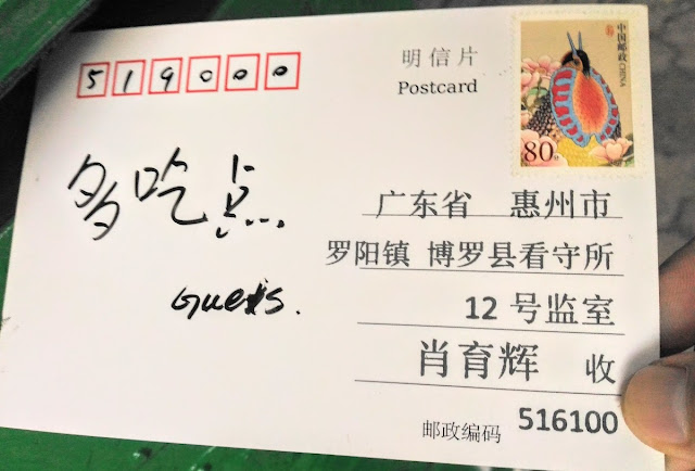 中国多地网友邮寄明信片给 被以“信用卡诈骗罪”逮捕的广东公益维权人士肖育辉