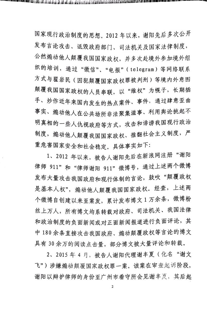 1.180余条直接攻击中国政府、煽动颠覆政权等言论的新浪微博(帐号“谢阳律师911”“律师谢阳911”)
