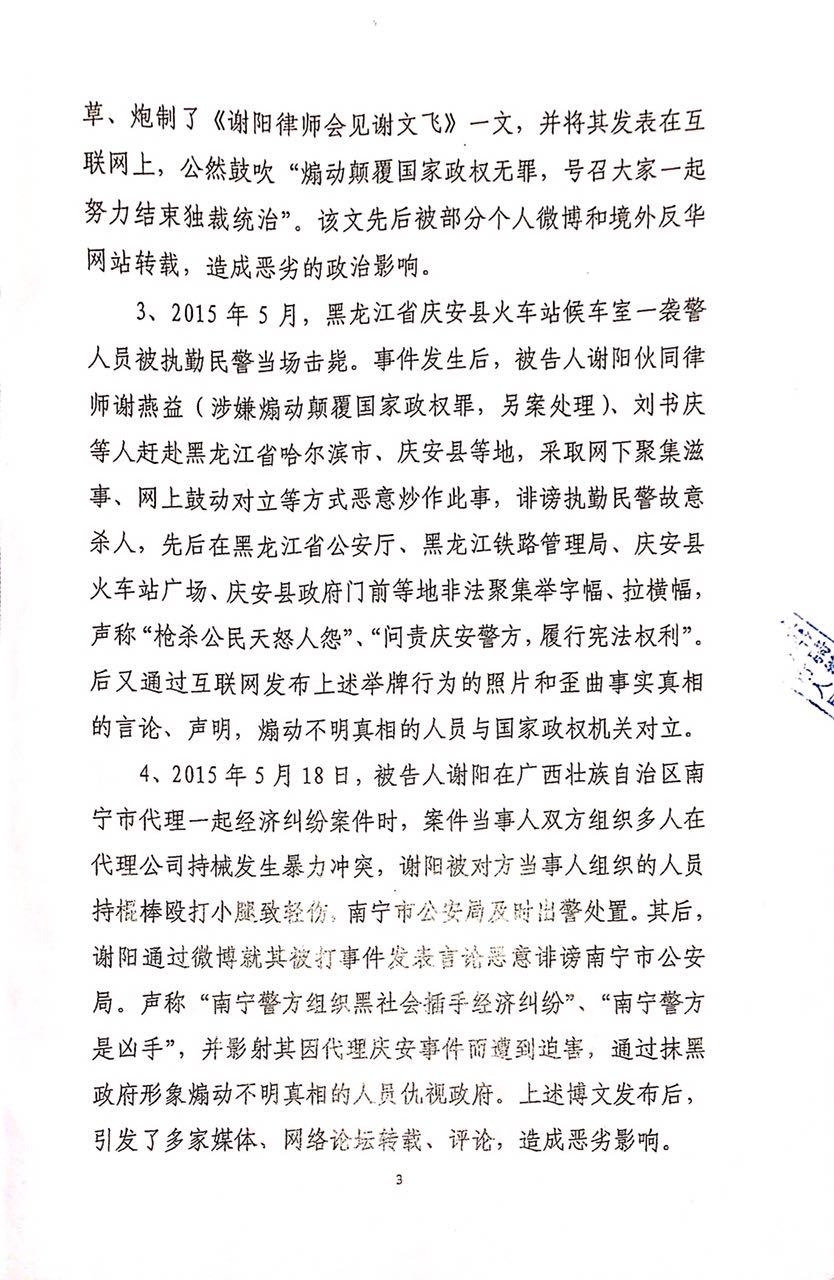 2.代理“谢文飞煽颠案”,会见后发表《谢阳律师会见谢文飞》一文
