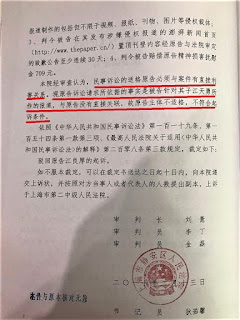 2017年2月10日江天勇父亲江良厚诉澎湃新闻抹黑案。收到上海市静安区人民法院告知合议庭组成人员,书记员通知书。告知书称,本案合议庭由刘薏、李丁、金磊组成,刘薏担任审判长,狄茹馨担任书记员。