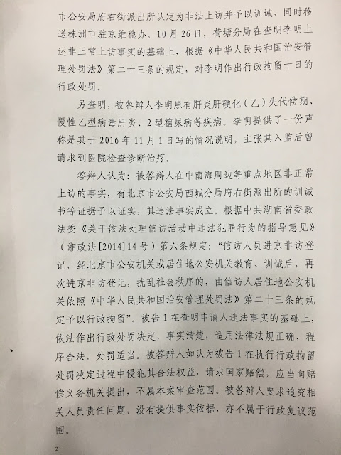 2017年2月21日,株洲市人民政府对李明作出行政诉讼答辩状。