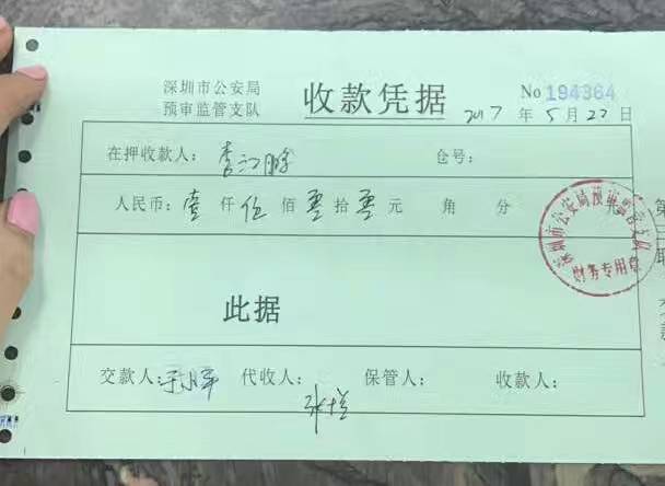 据了解,2017年5月13日深圳大抓捕事件中王军家属为其存钱收到的收据也是没有具体的仓号。