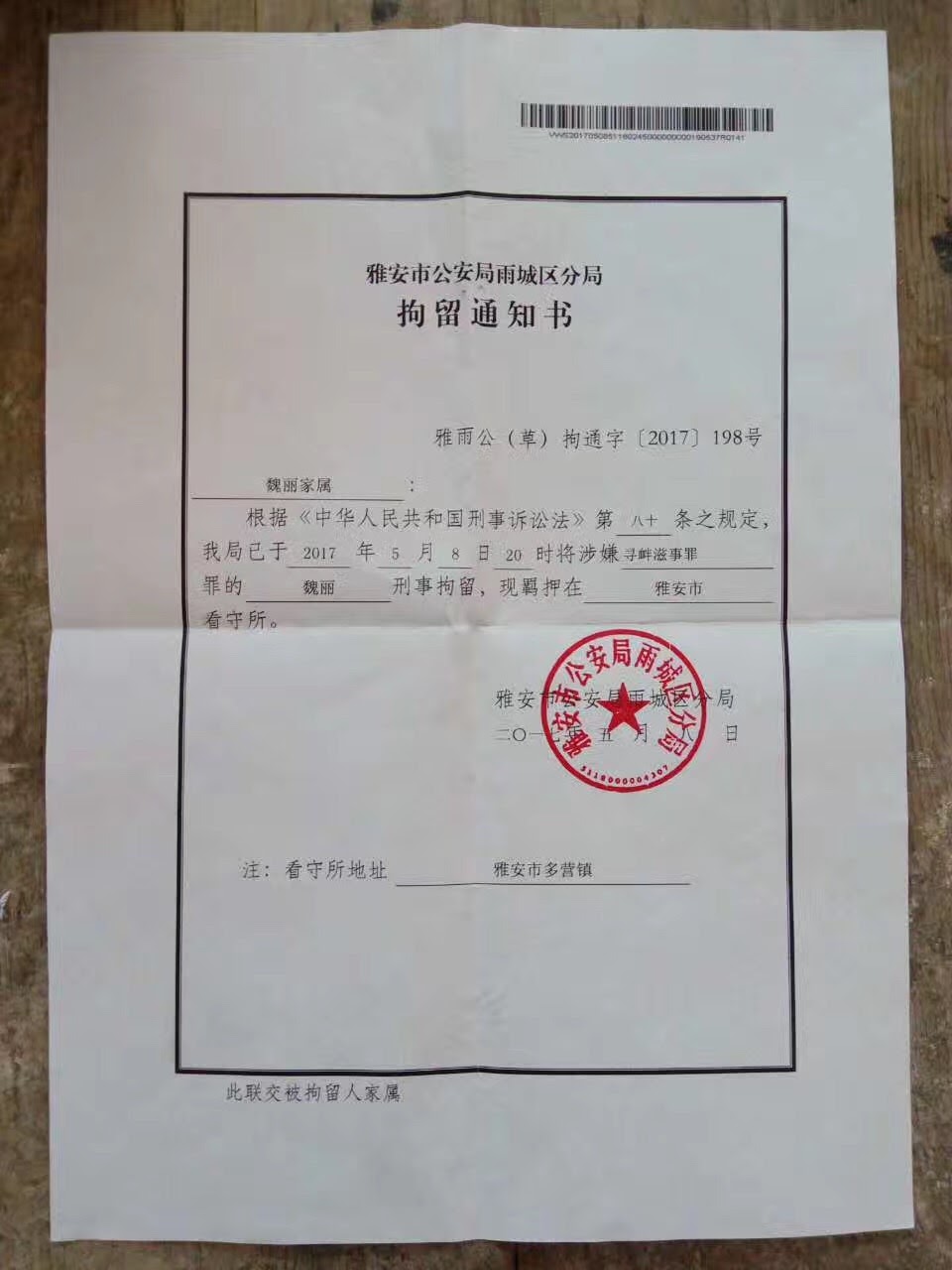 雅安访民魏丽 冯玉林 周帮凤 宦泽智 杨志祥五人因到北京上访 遭雅安当局以涉嫌寻衅滋事罪羁押 2017-05-11 权利运动编辑 权利运动编辑员获悉,2017年5月8日,四川雅安访民魏丽、冯玉林、周帮凤、宦泽智、杨志祥五人因到北京上访,在石家庄站被雅安市政府人员拦截并强制带回来雅安后全部以涉嫌寻衅滋事罪刑事拘留,现羁押于雅安市看守所。 分享这篇文章到: