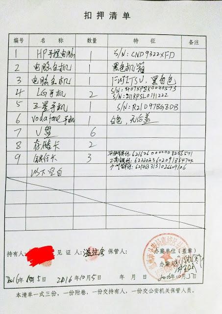 10月4日 上午惠州市城区公安分局数名警员查抄肖育辉在惠州的住处。