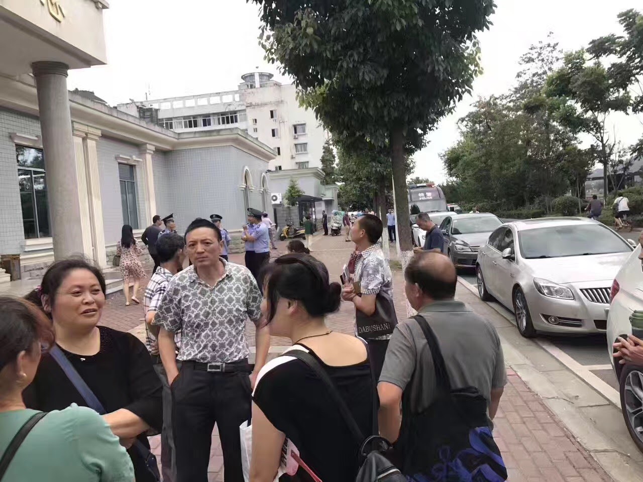 2017年7月4日上午九点,雅安市中院开庭审理王淑蓉被指控以危险方法危害公共安全罪、寻衅滋事罪上诉一案,法庭内外聚集大批警察,二十多个雅安访民朋友也前去围观并要求旁听,都遭到法院拒绝,而审判庭的旁听席还有很多空位。