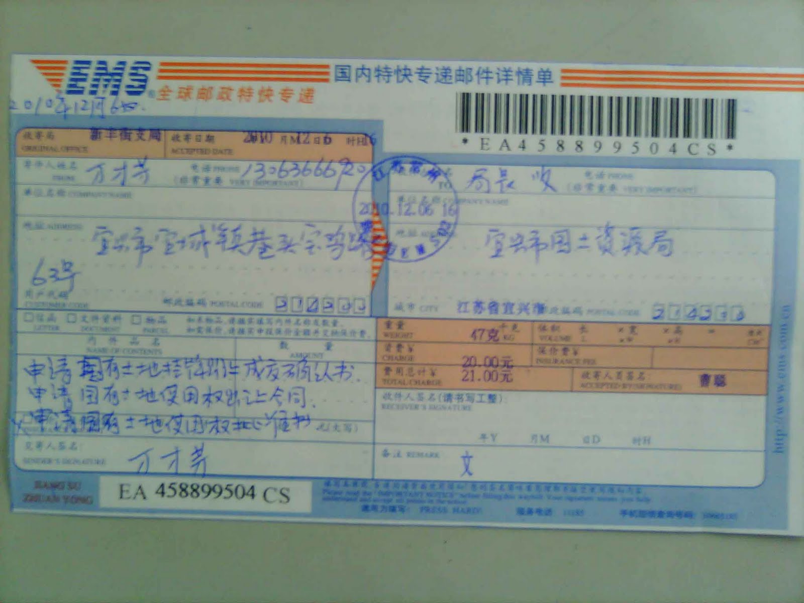 昨天上午,江苏省宜兴市宜城街道城北西路86号被强拆居民万才方到宜兴市国土资源局、城乡建设局和规划局,询问自己于12月6日用特快专递申请政府信息公开房屋强拆事项。以上三个政府行政机构就万才方的依法公开申请相互推诿,尤其是国土资源局并没有从罗亚萍刚刚被判处死刑中吸取教训,态度十分恶劣,拒绝依法公开万才方房屋(城北)地块挂牌出让给予房地产公司任何手续。