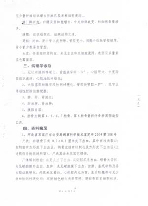 市公安局尸检报告中证明我父亲“右锁骨下有0.7*0.2厘米的皮下出血,(实际位置在右锁骨上),其中有浅表裂口,胸骨左缘有针刺孔(为抢救时所留)(二检证明伤及心脏)”。我看到尸检报告([2004]冀石公刑技法字第108号)与事实严重不符(抢救记录和120医生都证明抢救时并没有造成上述损伤)。因此我们就把此事反映到市公安局纪委请求调查,市局纪委要求新华分局纪委调查并给我们答复。11月,新华分局纪委在调查时说法医鉴定是技术活,就让法医齐立滨当面解答我提出的问题。齐说“你父亲锁骨下的伤(实际位置在锁骨上)是120急救时作穿刺造成的(实际位置不能做穿刺),胸骨左缘的针刺孔是抢救时打强心针造成的”。我说不对。当我拿出120抢救记录时,齐说这没用,他也有证据证明打过强心针,可当齐回办公室拿他的证据以后,就连人也找不到了。分局纪委杨书记打他的手机,手机关机。直到现在,我也没见到法医齐立滨所谓的证据。他们做尸检时的现场照片,在有伤的位置,为什么没有特写镜头?为什么没有参照对比的标尺?后纪委答复我们右锁骨下的皮下出血是120做穿刺造成的,胸骨左缘的针刺孔是120医生抢救时打强心针所留。派出所书面证明,没有人能证明凶手一家动手打人。