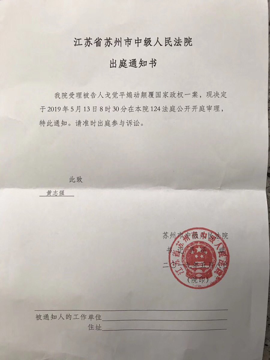 戈觉平被指涉嫌煽颠罪的案件,二度召开庭前会议后,下周一(13日)将在苏州巿中级法院公开开庭。