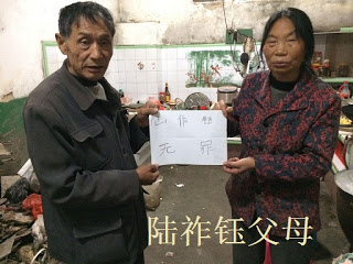 屏南当局一到有开会或敏感的日子,就把陆父母看管起来,派人守在陆家附近。陆母去山上采茶,去地里干活,也会被跟踪。陆母得空坐下就会思念女儿“祚钰,我的女儿,屏南政府违法办案,害苦了我的女儿。以区区3000元补助费构陷我女儿寻衅滋事。我们家被政府占用的土地金额价值几百万。我们不需要占政府一分便宜,只要政府把抢我们家的还给我,还我女儿”。陆母常常睡不着,干瞪眼到天亮;白天又接着干活和照顾受伤的陆父,身心疲惫。