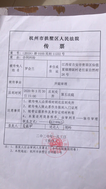 今天肖青山提供法律援助的当事人是江西省吉安市青原区值夏镇塘坡村人罗会兰,是因为一桩合同纠纷案的原告,被告是审理合同纠纷案的杭州市拱墅区法院民事庭的法官方素平,及拱墅区法院党组书记王美芳,案由是两被告拖延审判,充当违法分子保护伞,该法院将一起法律规定三个月内应当审结的简易程序案件,审了一年多没有结果。