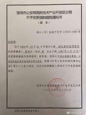 遭宝鸡警方酷刑的陕西人权律师常玮平又遭指定居所监视居住后 律师申请取保遭拒绝